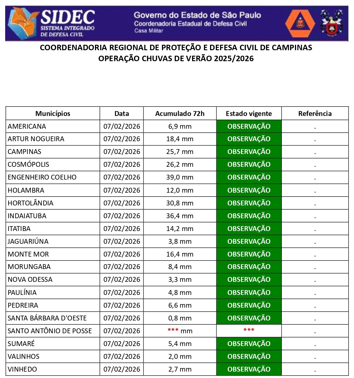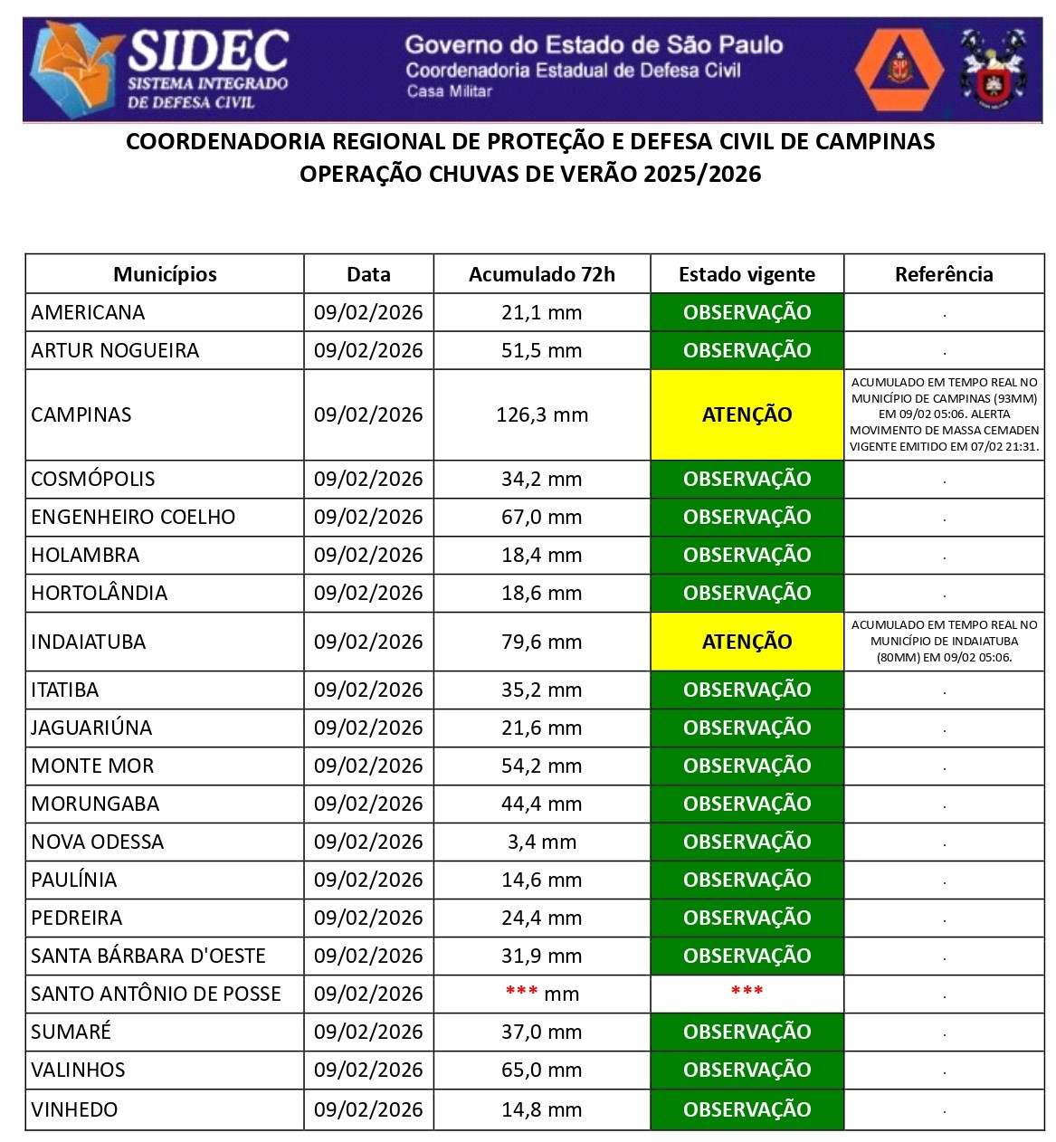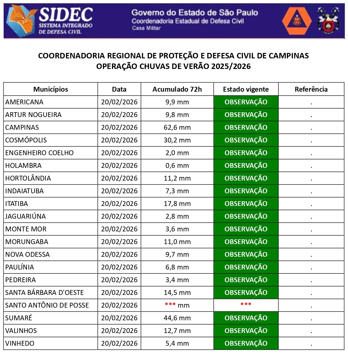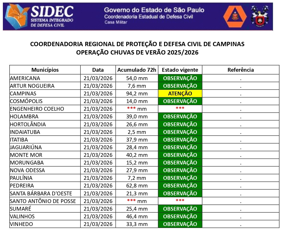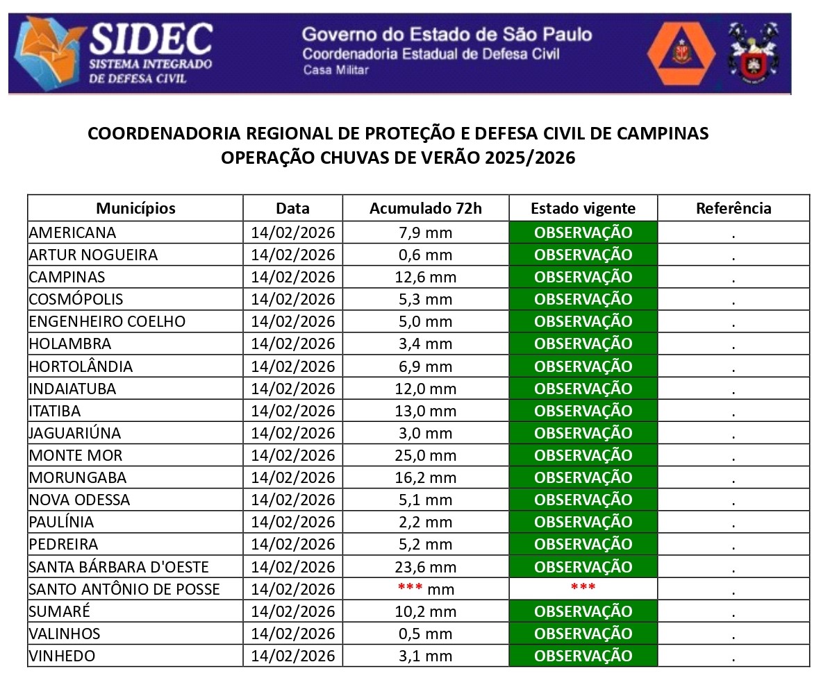 Histórico - ÍNDICE PLUVIOMÉTRICO – OPERAÇÃO CHUVAS DE VERÃO