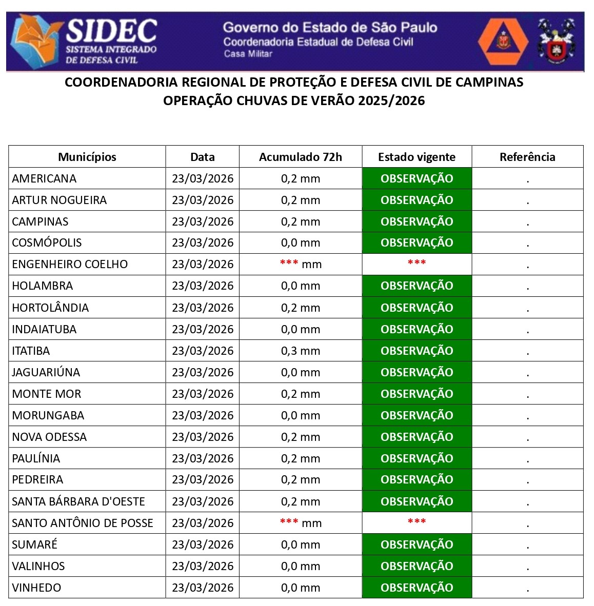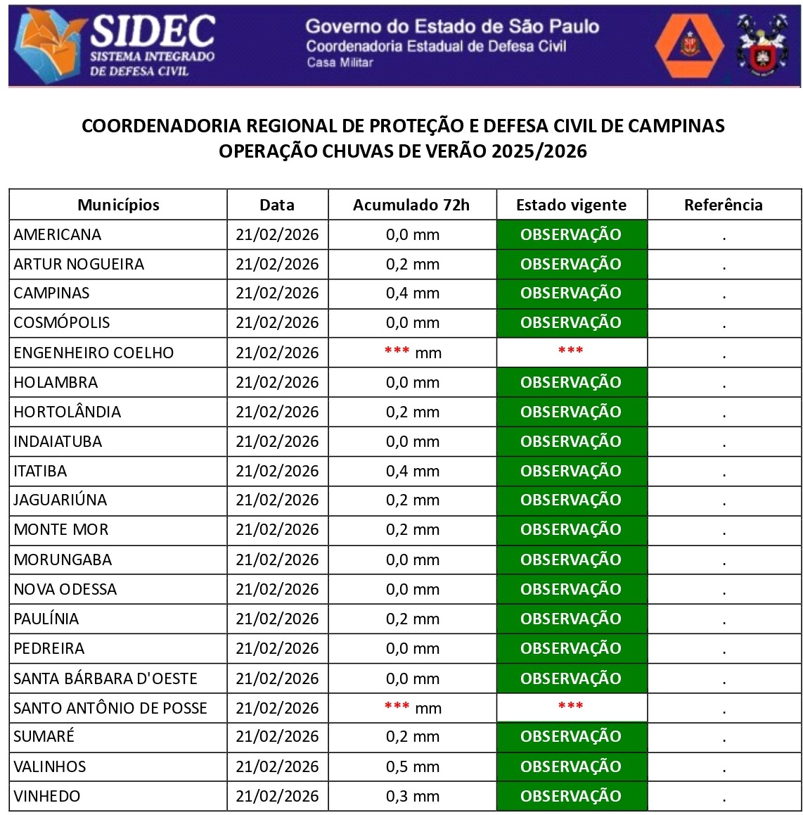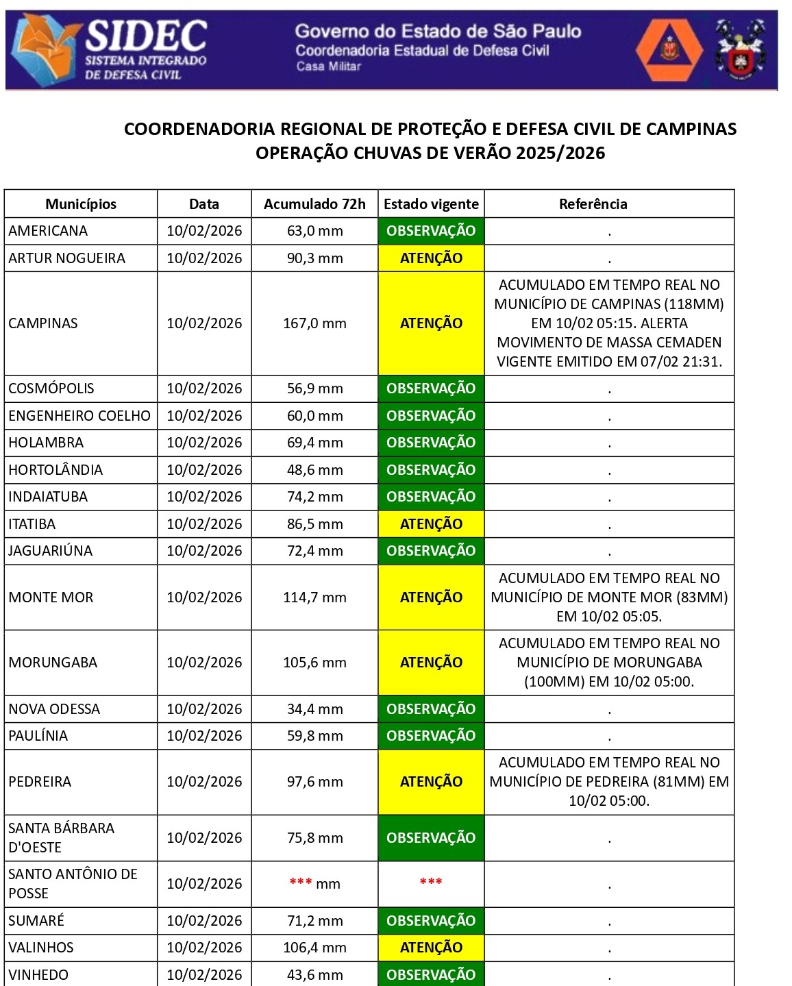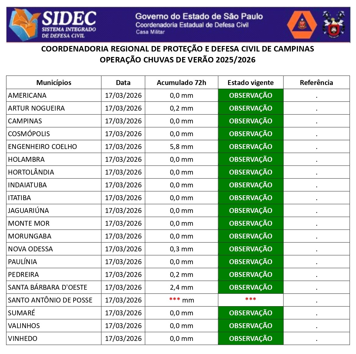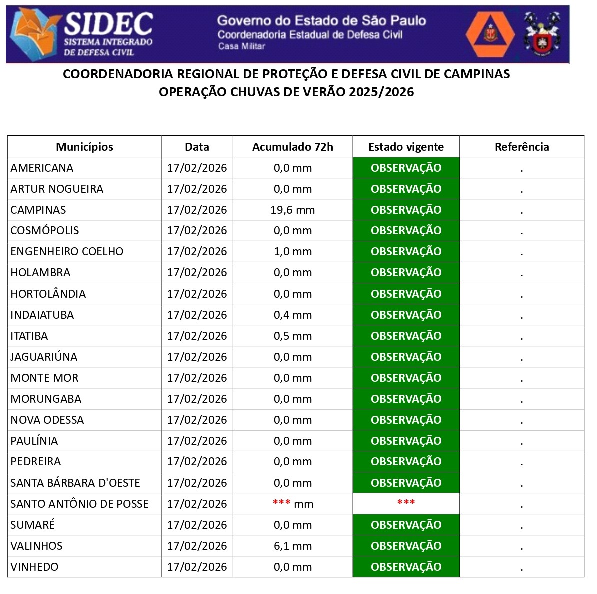 Histórico - ÍNDICE PLUVIOMÉTRICO – OPERAÇÃO CHUVAS DE VERÃO