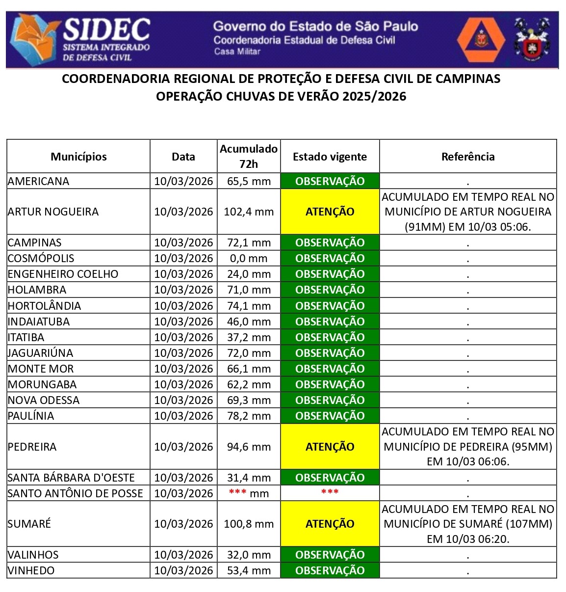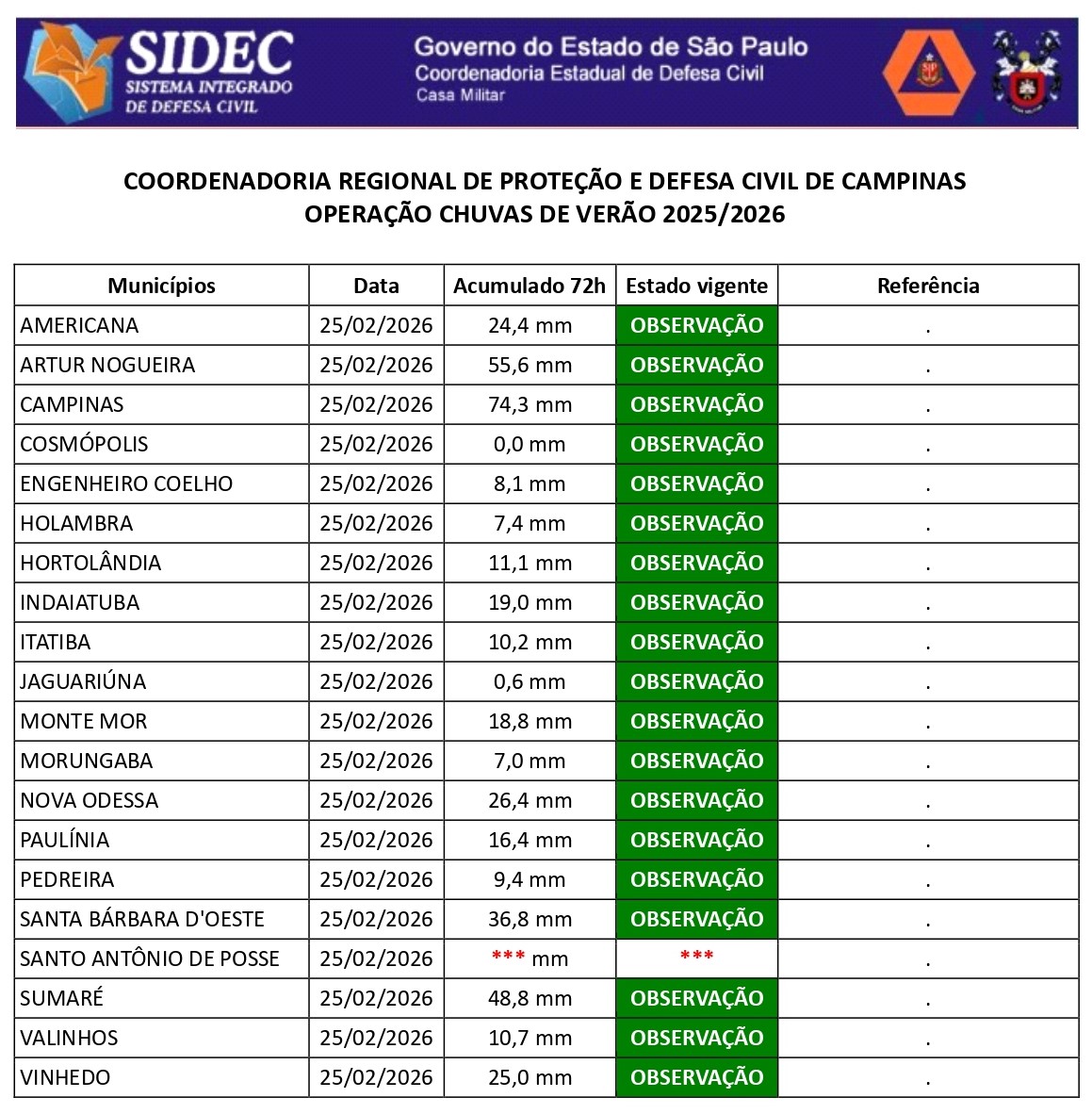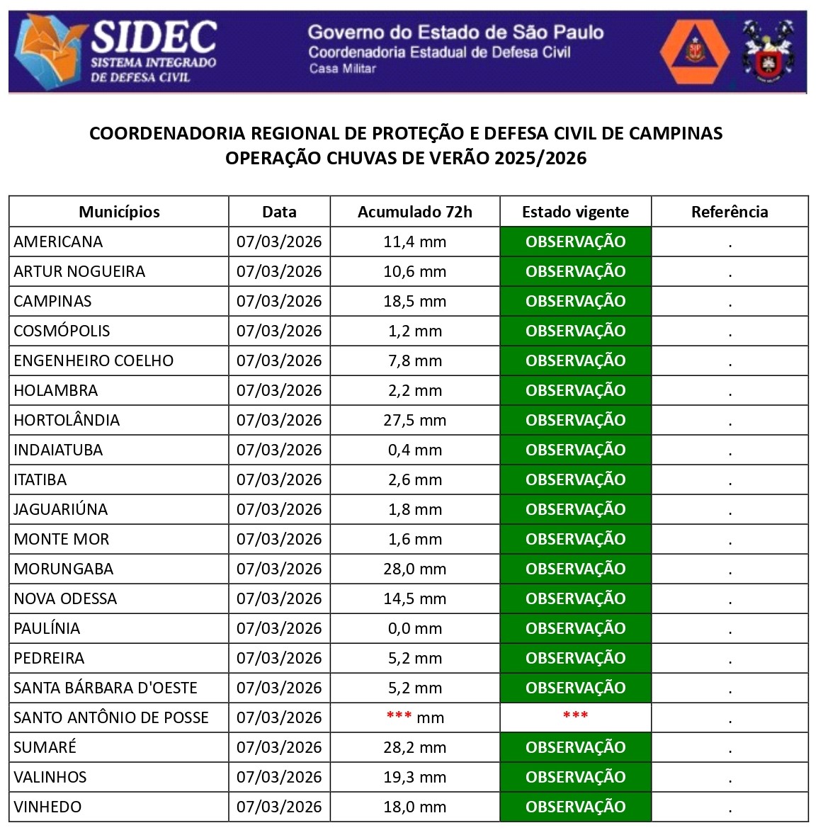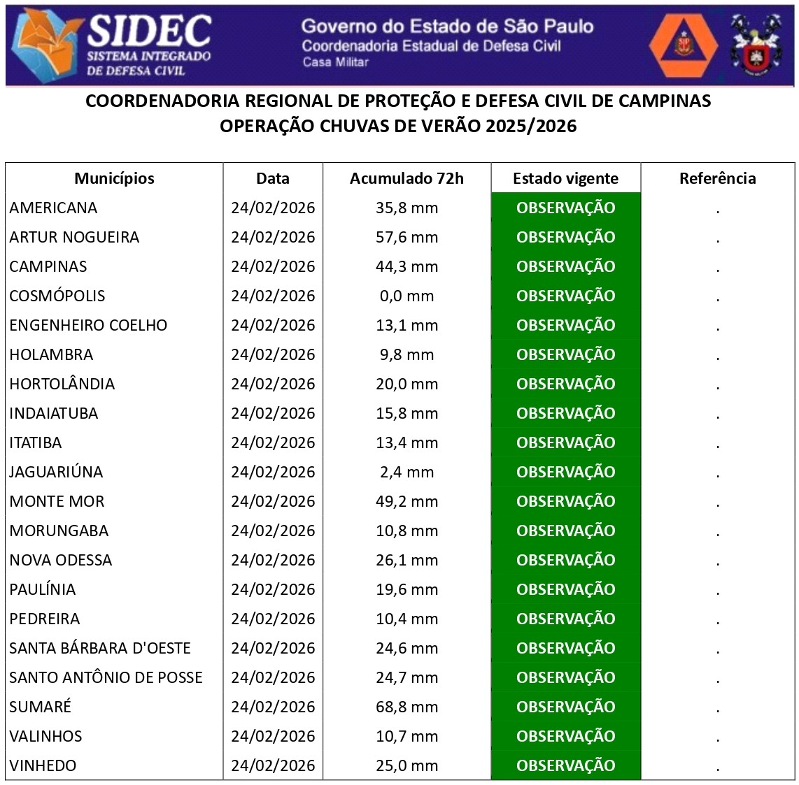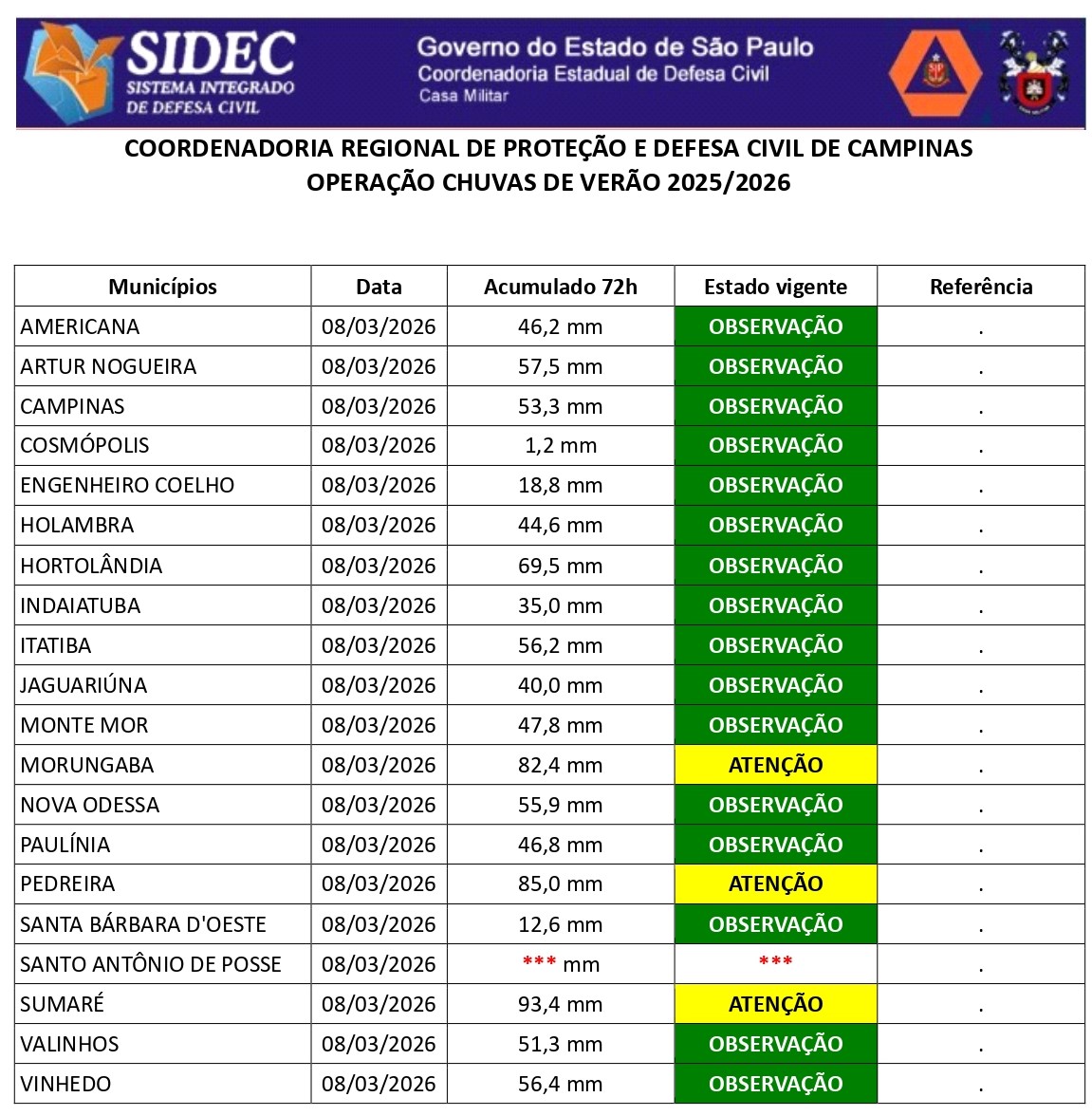 Histórico - ÍNDICE PLUVIOMÉTRICO – OPERAÇÃO CHUVAS DE VERÃO