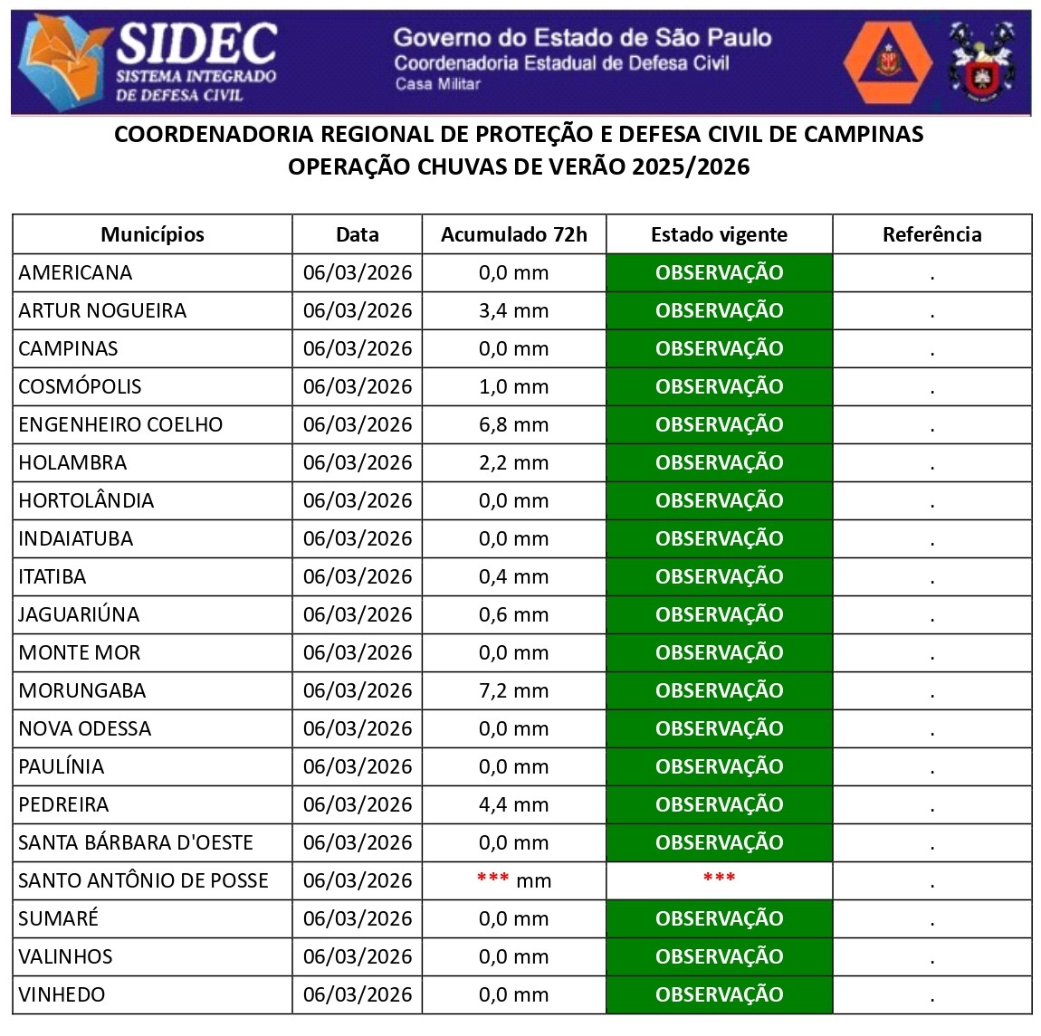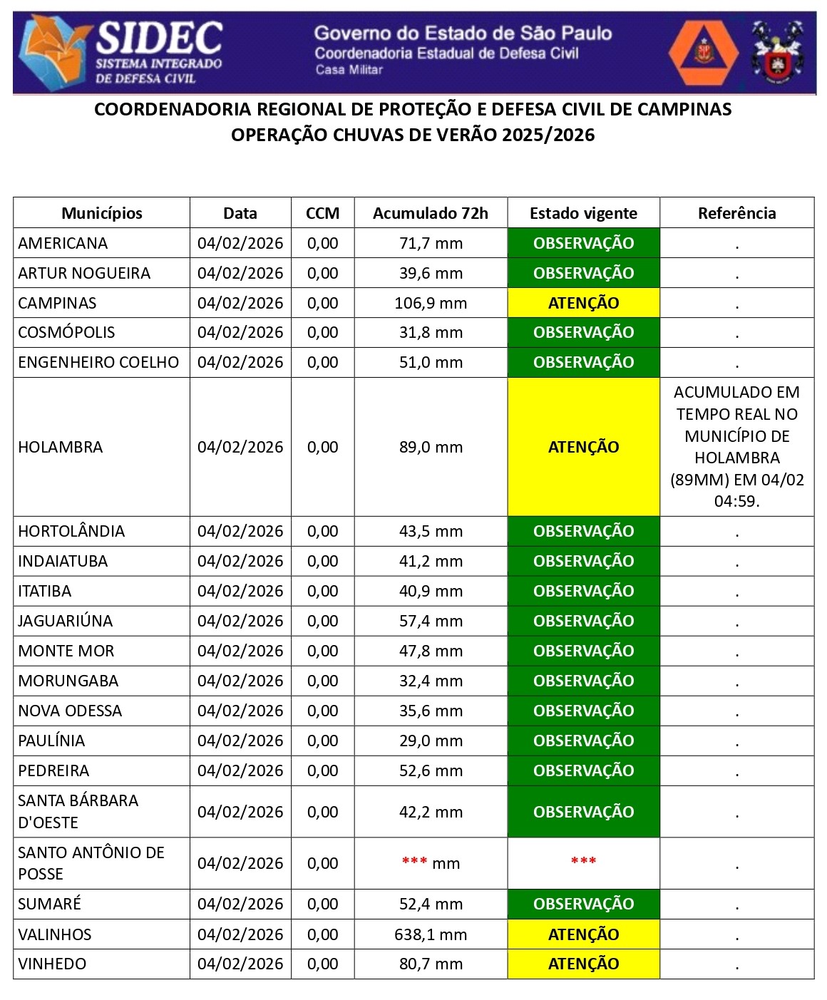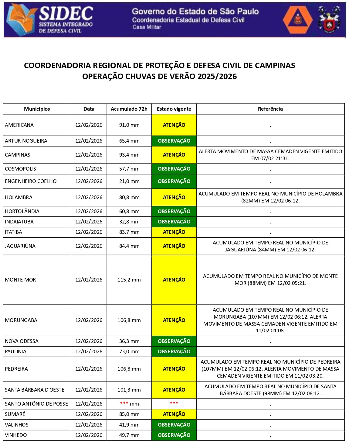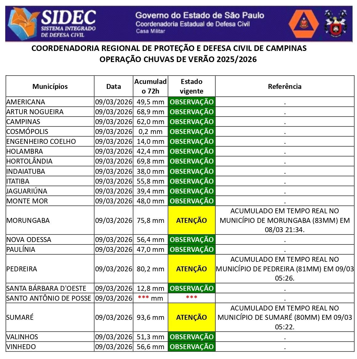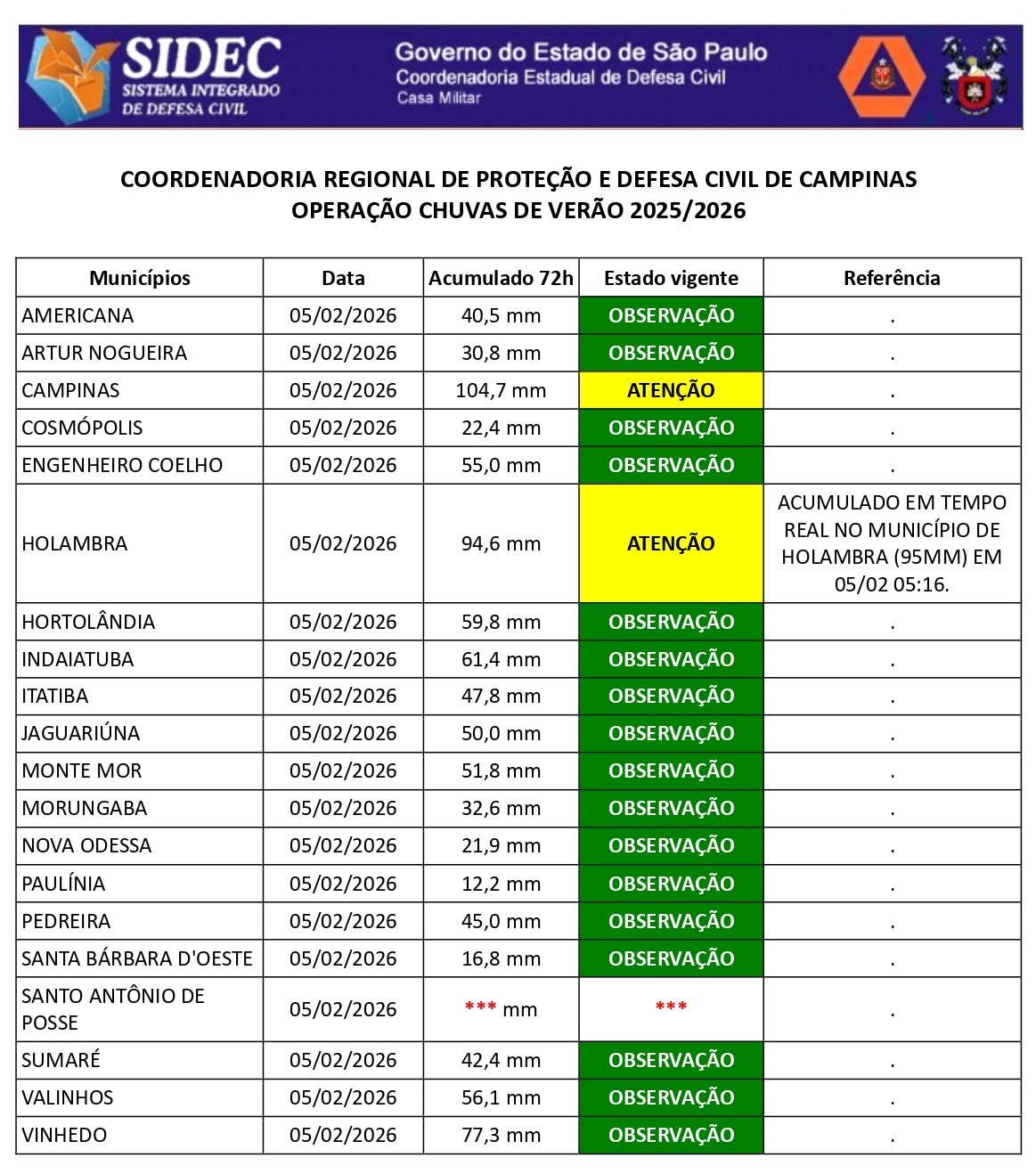 Histórico - ÍNDICE PLUVIOMÉTRICO – OPERAÇÃO CHUVAS DE VERÃO