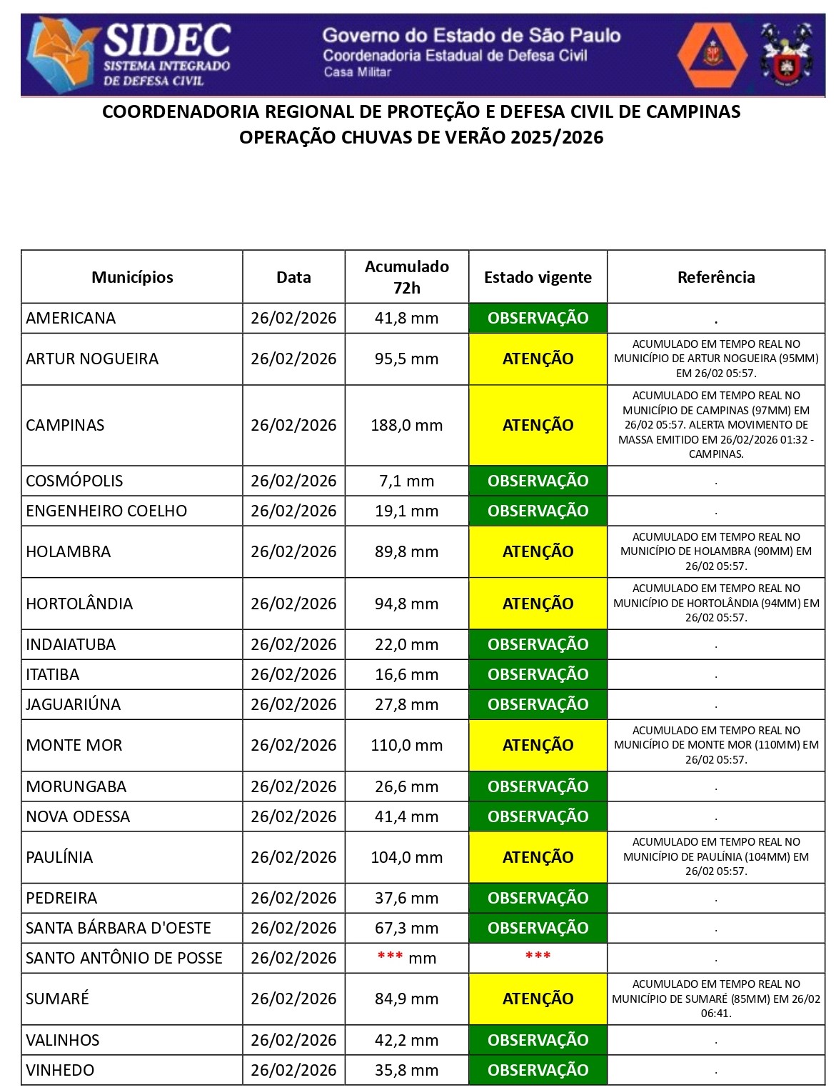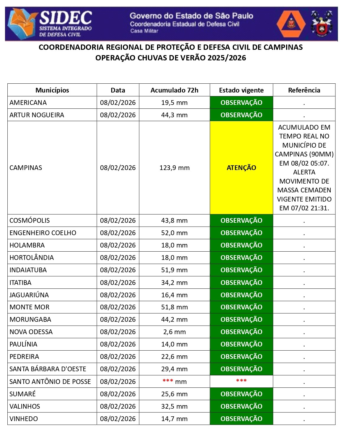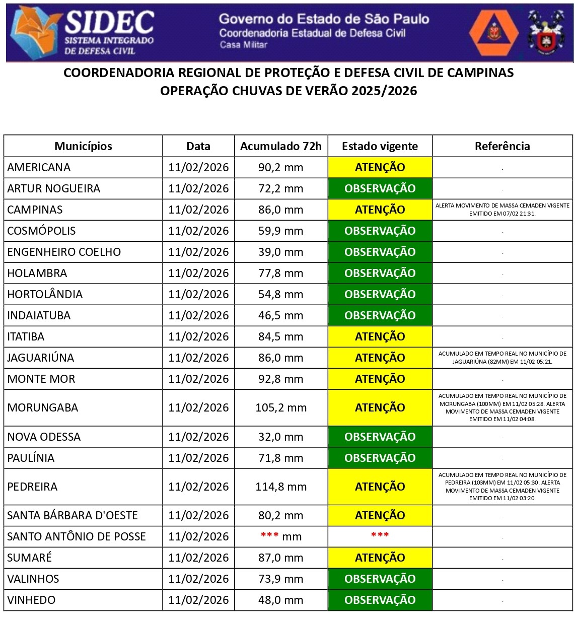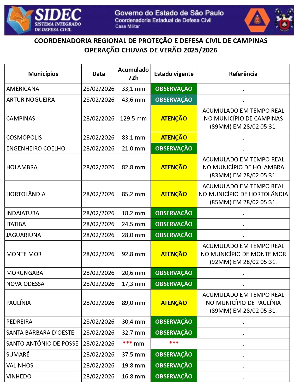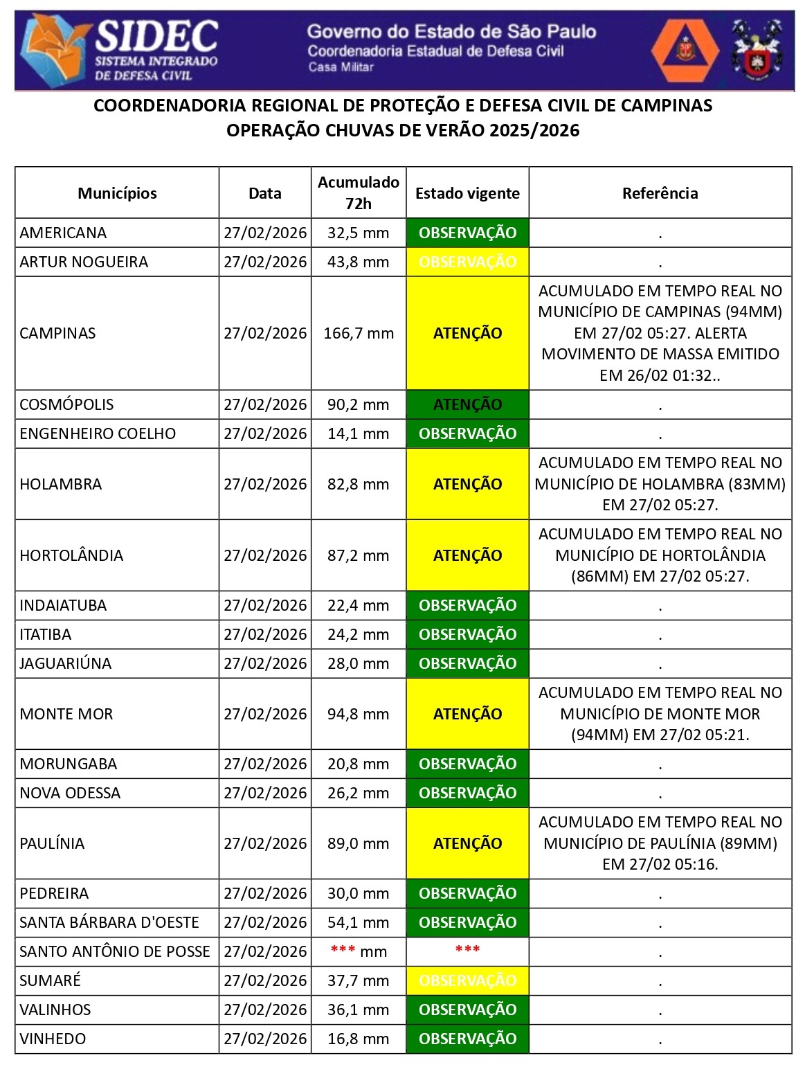 Histórico - ÍNDICE PLUVIOMÉTRICO – OPERAÇÃO CHUVAS DE VERÃO