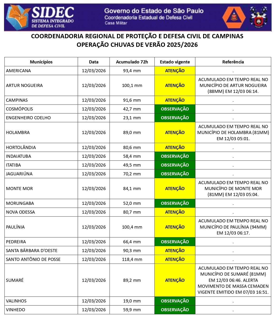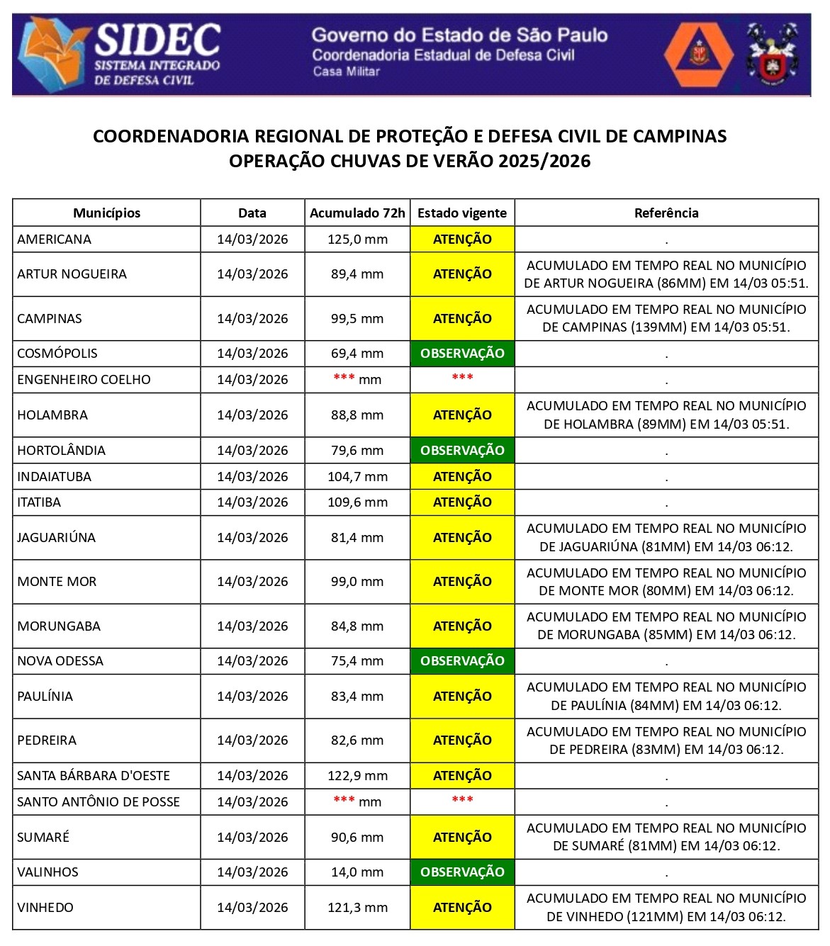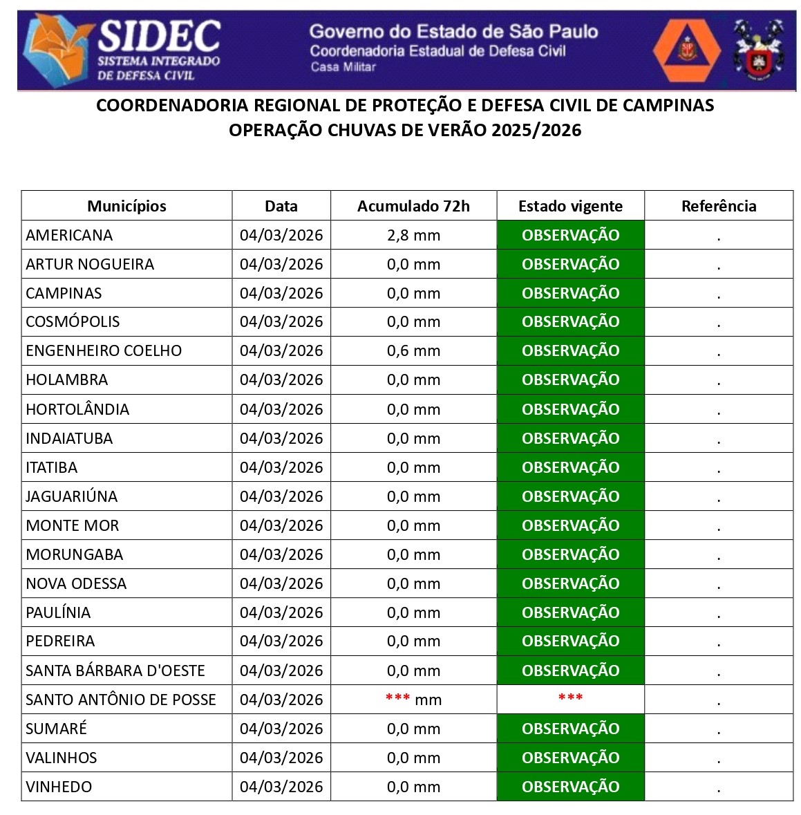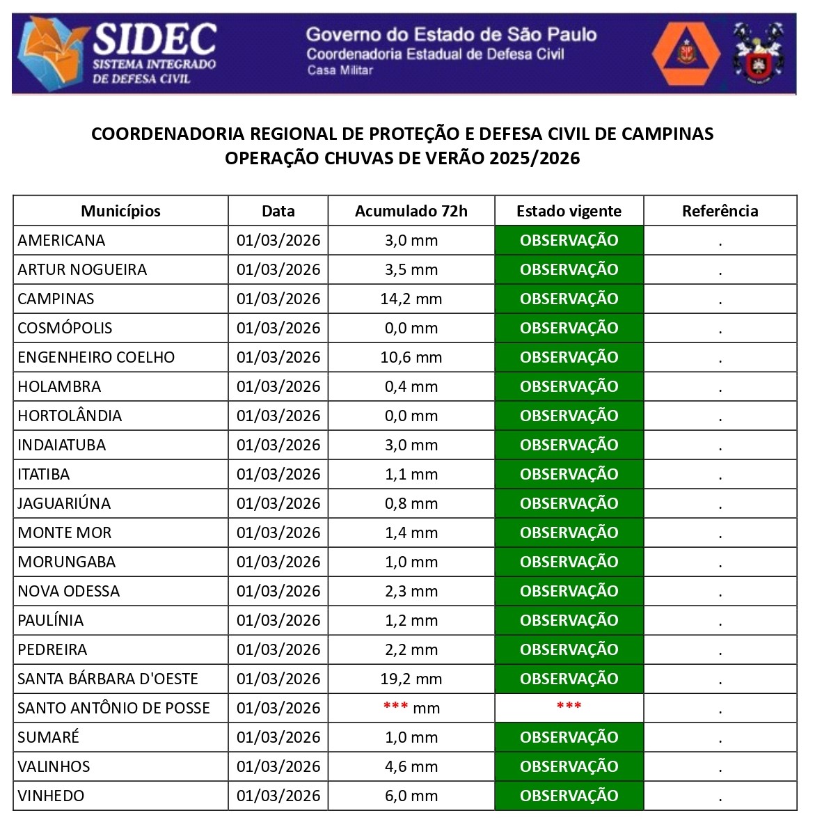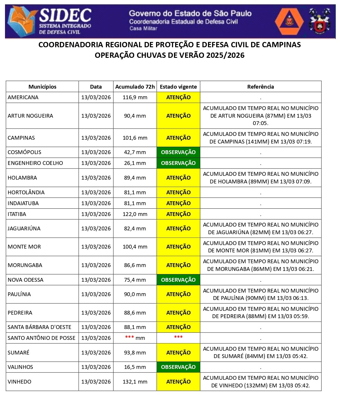 Histórico - ÍNDICE PLUVIOMÉTRICO – OPERAÇÃO CHUVAS DE VERÃO